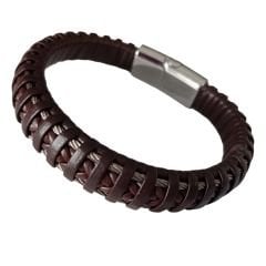 %100 Deri̇ Saç Örme Çelik İp Sarma Kahve Bileklik Krom Mıknatıs Kapama